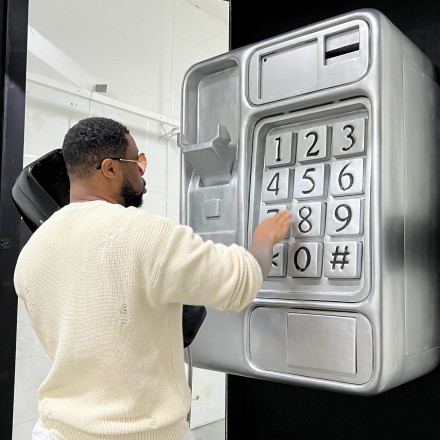 The booth with an oversized phone inside is a physical and metaphorical symbol of connecting to the past and emanates the sense of childlike innocence and nostalgia that everything appears larger than life from a child’s view. This technologically redundant communication device which was part of the fabric of society in the 1990s, poses a powerful reminder of a time when a collect call to your parents was the only lifeline available when you were lost. It invites viewers to reflect on the concept of reaching out to loved ones in moments of need with thought-provoking questions: “When you only have 10p in your pocket during a time of crisis, who would you call? More importantly, who would call you back?” The work encourages a deeper exploration of trust and vulnerability, shedding light on how these elements shape our connections at different stages of life, and how we evolve and learn through these experiences.